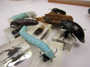 Collection of live and preserved insects hanging out in the Alleyne-lab. All insects have a cuticle with the same basic building blocks. But the cuticle of different species, or even different life stages, differ in hardness, flexibility. permeability, color, etc. (Photo: Marianne Alleyne)